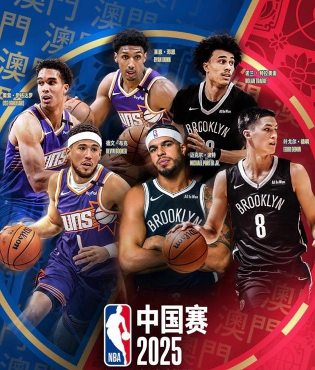 今年NBA中国赛将于10月10日、12日在澳门开打,对阵双方是篮网和太阳。