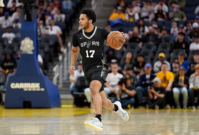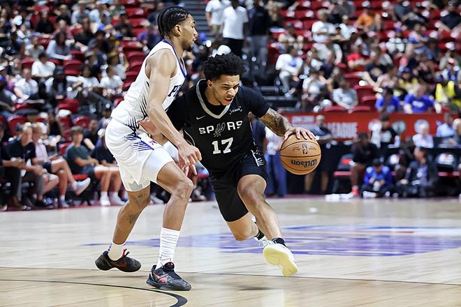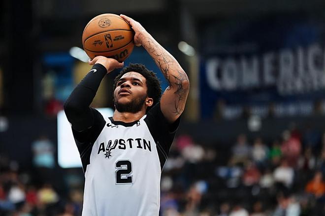 其中尼尔森出生于2001年8月,现年24岁,身高185cm,体重86kg,是2024年NBA选秀大会中的落选秀。尼尔森在去年夏天曾与圣安东尼奥马刺签下过一份训练营合同,但是很快就被裁掉了。上赛季他效力于马刺在NBA发展联盟的下属球队奥斯汀马刺,他在NBA发展联盟赛场总共出场42次,场均出场时间达到了17.6分钟,场均数据为10.4分2.7篮板2.1助攻1.3抢断0.2盖帽,还有1.5次失误和1.5次犯规,投篮命中率44.3%,三分命中率28.3%,罚球命中率80.7%。尼尔森在上赛季NBA发展联盟赛场的表现只能算是马马虎虎,他展现出了一定的得分能力,但是他的外线投篮稳定性并不理想,他在防守端的表现也是比较一般的。
