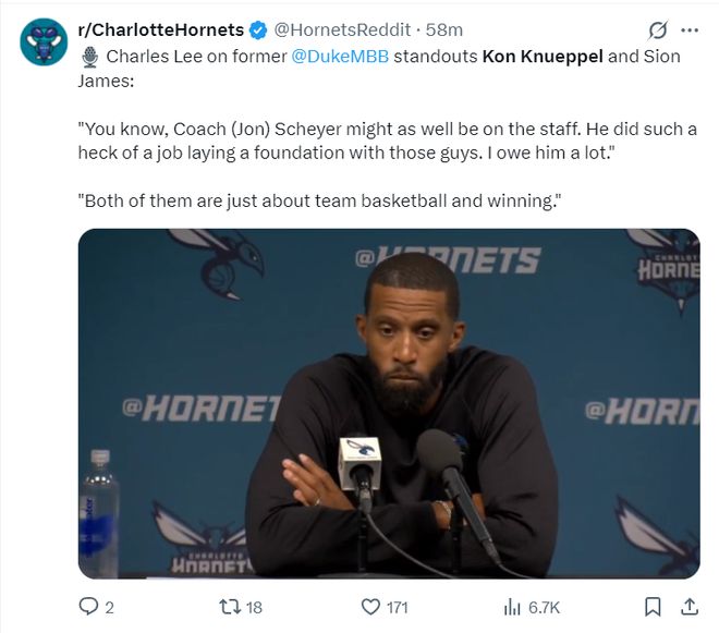 赛后主帅查尔斯-李同时称赞了西恩、克努佩尔两人,他觉得这两人都是有能力在NBA打出风采的新秀球员。
