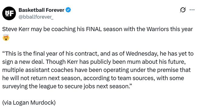 曝科尔下赛季可能离开勇士!合同年仍未续约助教已经开始找工作