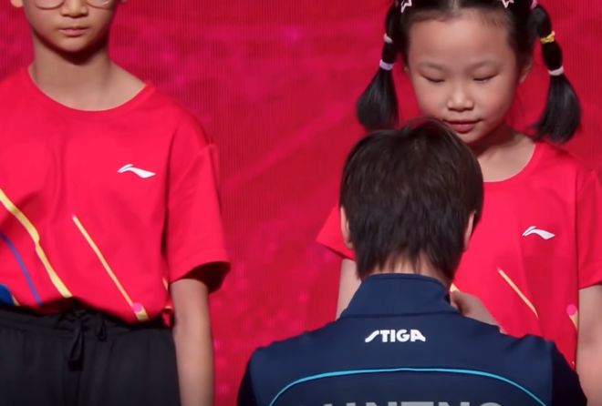 梳着两条辫子,一张萌娃脸很稚嫩,很可爱,陈思杨在赛场上却是狠辣无情,在乒超联赛总决赛期间,国少乒乓选拔赛也一并举行。陈思杨在9岁女单组和老对手吴扆依再次会师决赛,她以4比2击败对手,蝉联了国少选拔赛冠军。陈思杨在去年国少选拔赛杀进8岁组决赛,击败了吴扆依夺冠。这次,她还是击败吴扆依夺冠,统治了她这个年龄段的比赛。