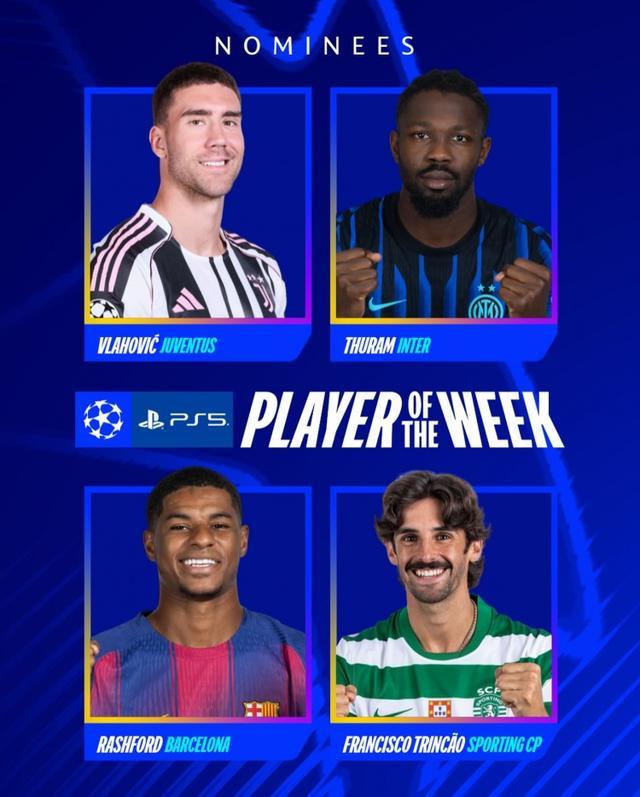 9月19日讯 欧冠联赛阶段首轮比赛战罢,欧冠官方列出了本周最佳球员候选。欧冠本周最佳球员候选:弗拉霍维奇(尤文)——2球1助图拉姆(国米)——2球拉什福德(巴萨)——2球特林康(葡萄牙体