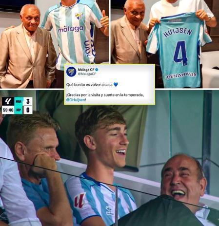 赫伊森与父亲一起观看了马拉加队的比赛,并穿上俱乐部高层赠送的印有自己名字和4号的马拉加球衣。