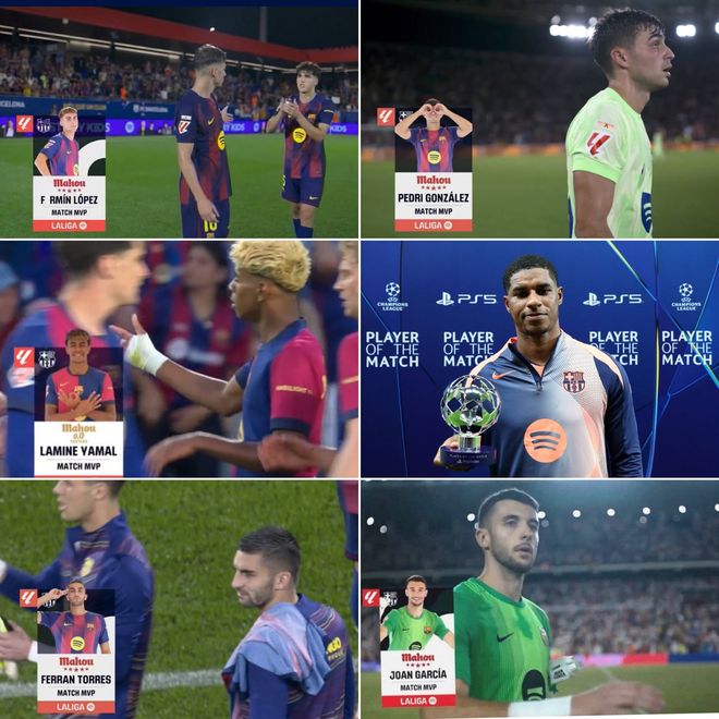 这也是巴萨开季至今6场比赛中的第6位获评官方MVP的球员。巴萨开季至今的每场比赛的官方MVP均是由本队球员获得,且分属6位不同的球员。