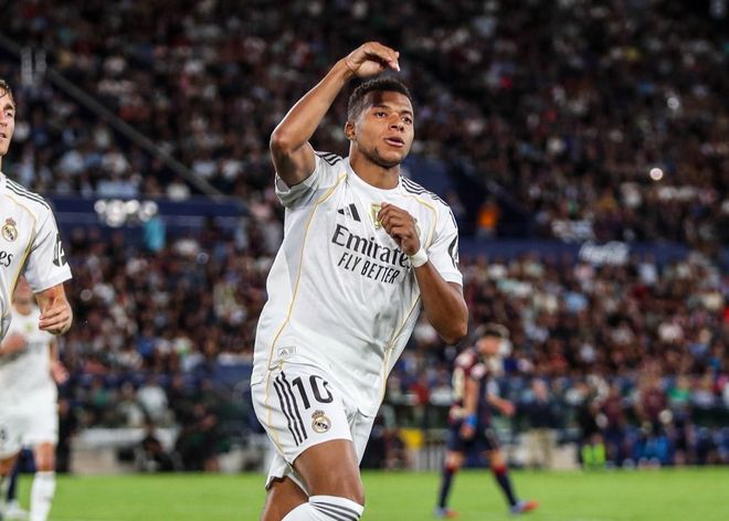 - 雷速体育10月26日讯 西甲联赛第10轮西班牙国家德比,比赛第22分钟,姆巴佩接贝林厄姆直塞单刀破门,帮助皇马首开...发表于: 10-27 09:19