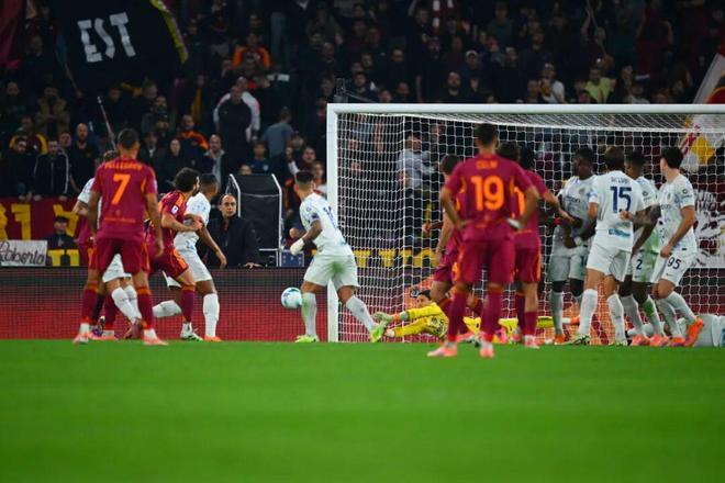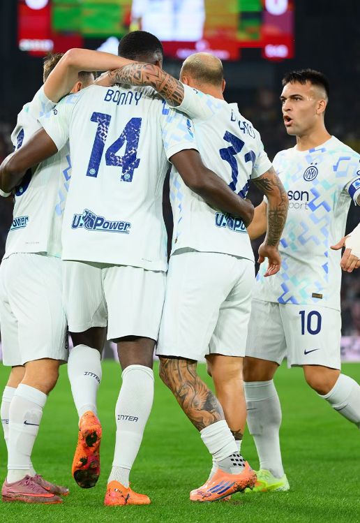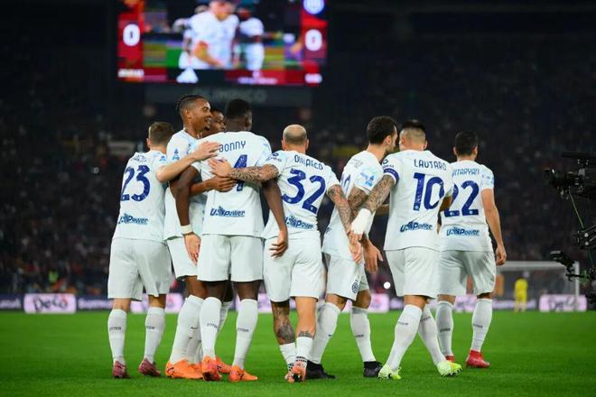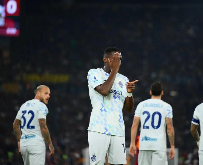 比赛开打后,国米立马取得梦幻开局;第6分钟,巴雷拉中圈附近直接起高球送到前场,罗马防线造越位失败,博尼抽射近角得手,1:0!夏窗以2300万欧元加盟后,博尼已经逐渐成为国米重要轮换角色,9场比赛3场3助攻也已经是张不错的答卷;而且这是国米对阵罗马打进的第300球,蓝黑军团也就此成为了意甲历史上(自1929-30赛季以来)第一支能够面对单一对手打进300粒进球的球队。