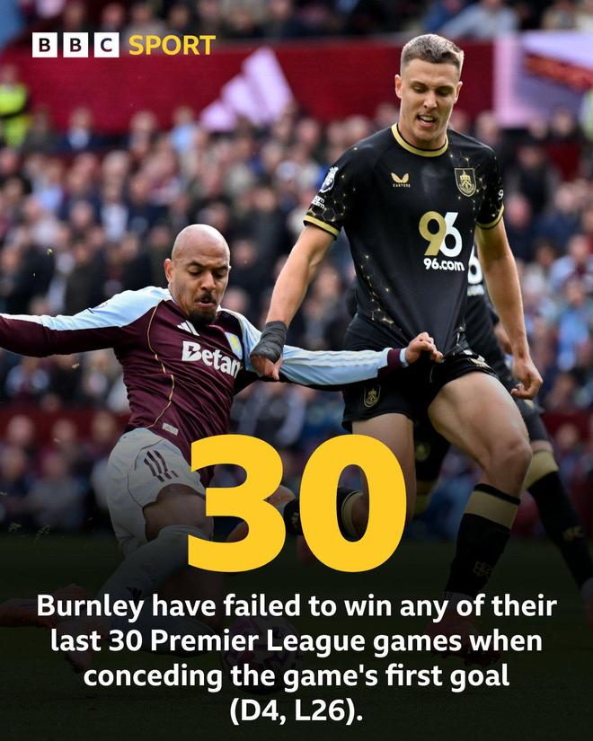 维拉稳了伯恩利近30场先丢球英超联赛最终4平26负