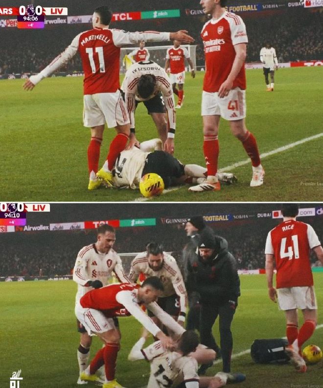而比赛尾声阶段出现了不和谐一幕,身价4500万欧元的阿森纳前锋马丁内利,推搡重伤倒地的利物浦后卫布拉德利,引发双方冲突。