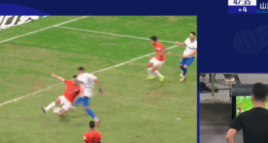 比赛开场仅24分钟,梁诺恒正面铲抢踢倒阿布都海米提,马宁第一时间出示黄牌,VAR介入后,马宁改判红牌,直接罚下梁诺恒!浙江队少打一人。