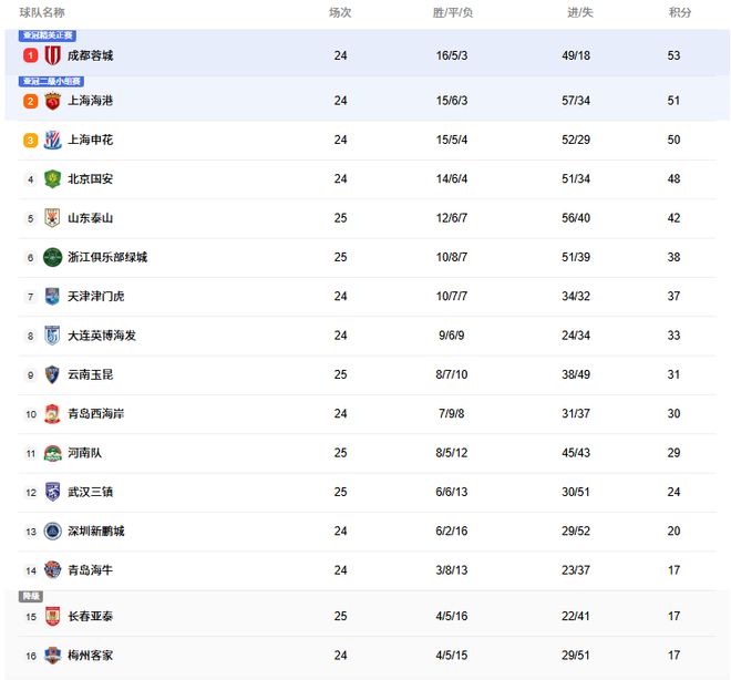 随着泰山22,亚泰33!中超积分:倒数第1换队,1队或退出争冠
