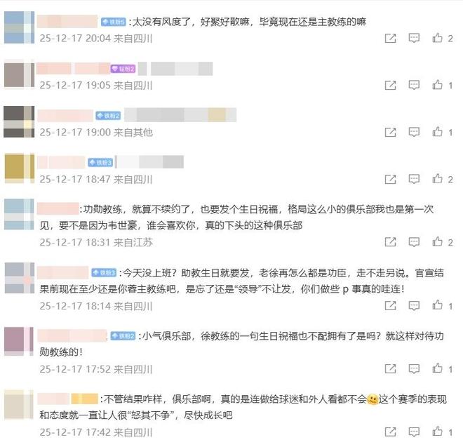 因为主帅即将离任,就连生日祝福都省了,蓉城官媒也引发了广大球迷的不满。